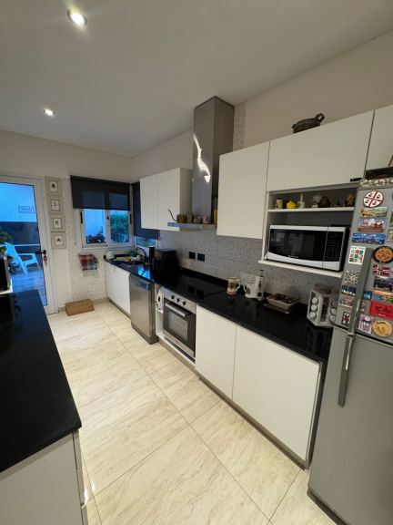 La cocina es cómoda y funcional, equipada con alacenas y bajo mesadas, mesada de granito negro Brasil y campana de diseño.
