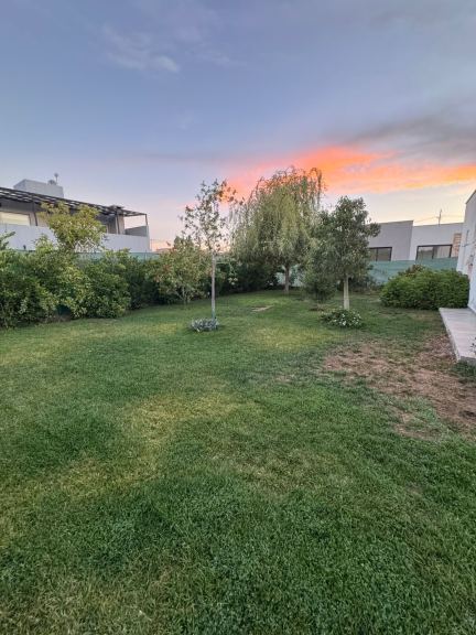 El jardín se encuentra completamente parquizado, con cuatro años de desarrollo, aproximadamente 300 plantas y árboles, césped en champas, churrasquera y armarios de leña.