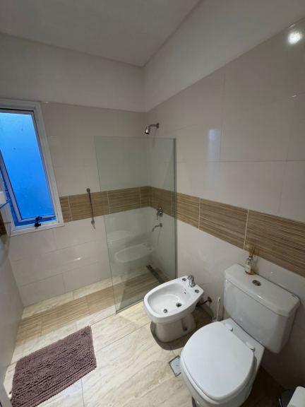Baño completo con ante baño con moderno vanitory , baño completo con mampara de vidrio .